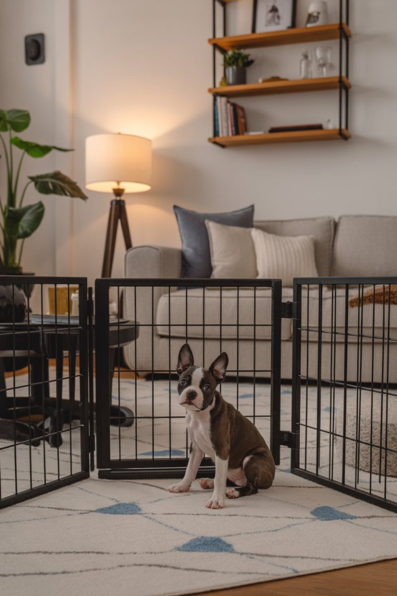 Puppy-proofing your home is key to keeping your Boston Terrier safe. Use baby gates to block off areas that could be dangerous or off-limits. Make sure to remove any small items or toxic plants that your curious pup might find.
