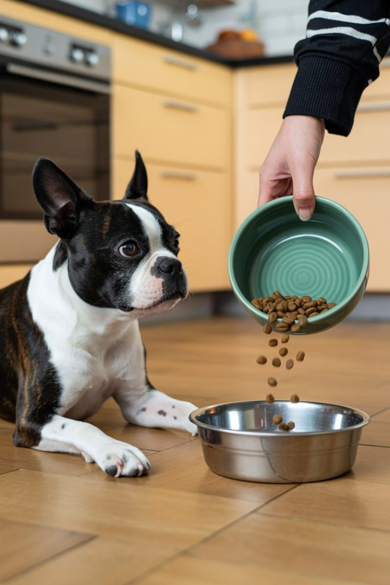 Keeping track of your Boston Terrier puppy’s food intake is key to their health. Use a measuring cup to ensure they get the right amount of food each day. Regularly check their weight and adjust portions as needed to keep them happy and healthy.