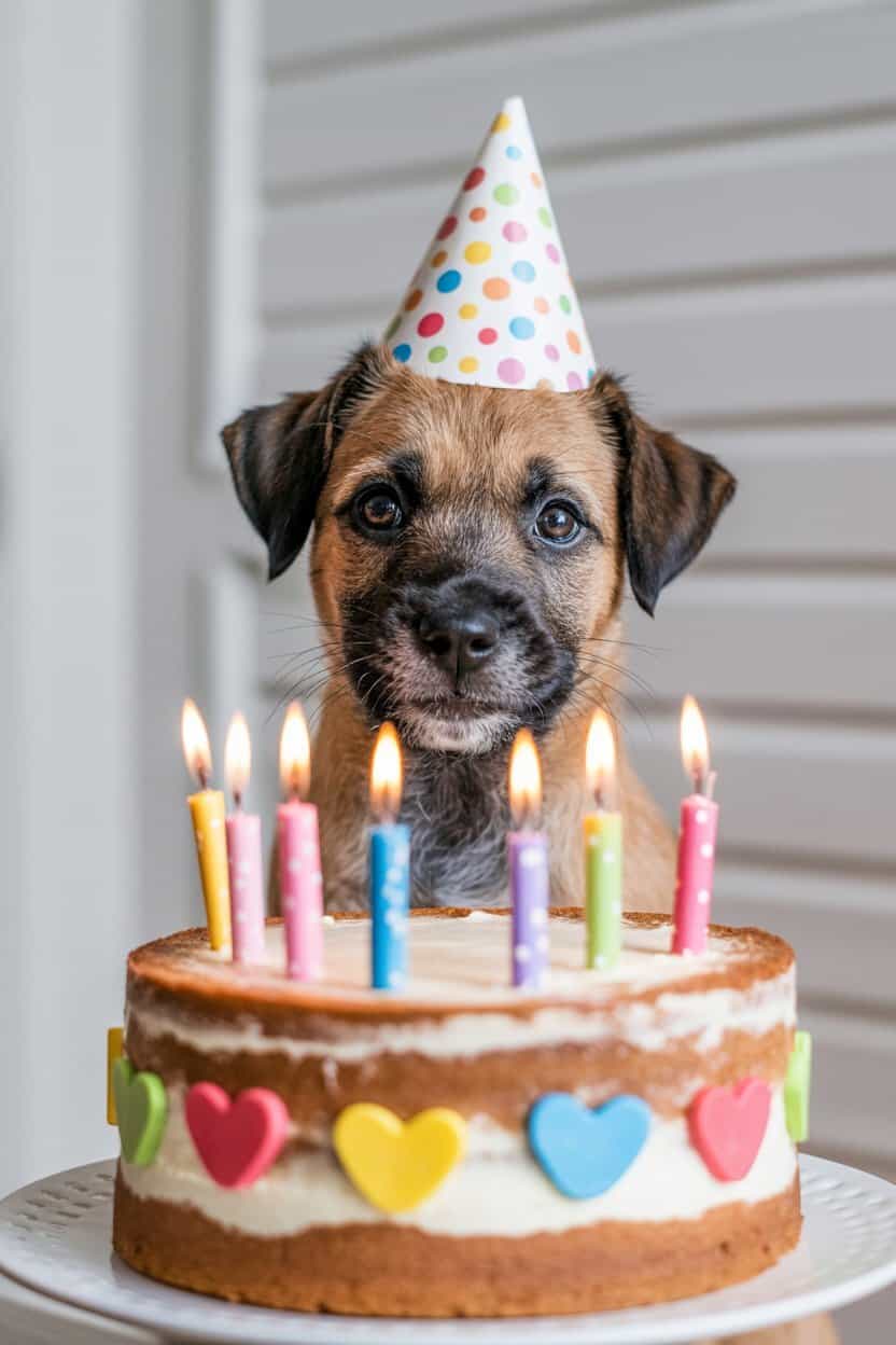What’s cuter than a puppy in a party hat? This little Border Terrier is ready to celebrate with a delicious cake and colorful decorations all around. Birthdays are a perfect excuse for fun and treats, especially when it involves our furry friends!